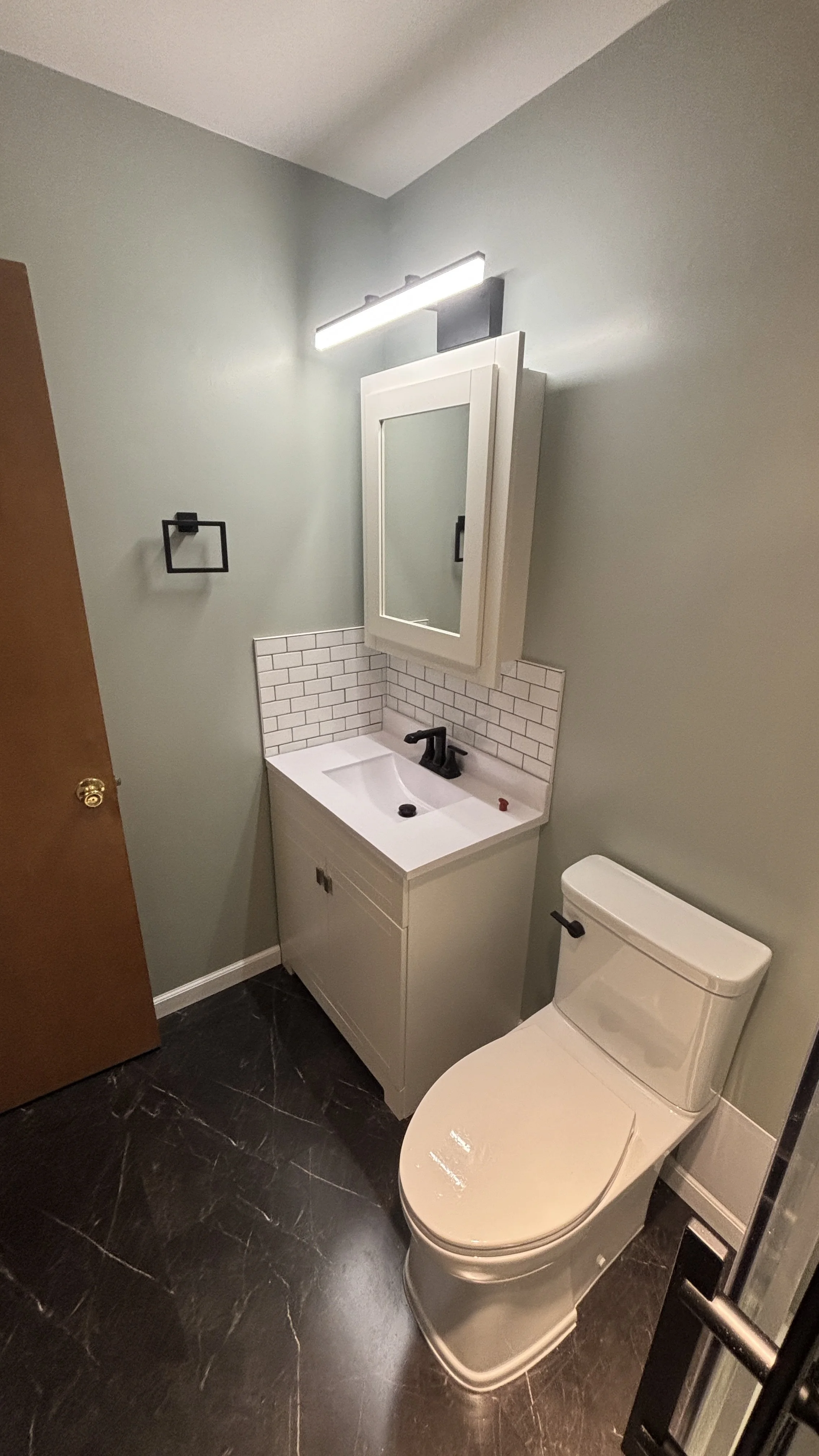 Bathroom Remodel with a tub to shower conversion. Customer requested to keep the tub faucet and we were able to make that happen!