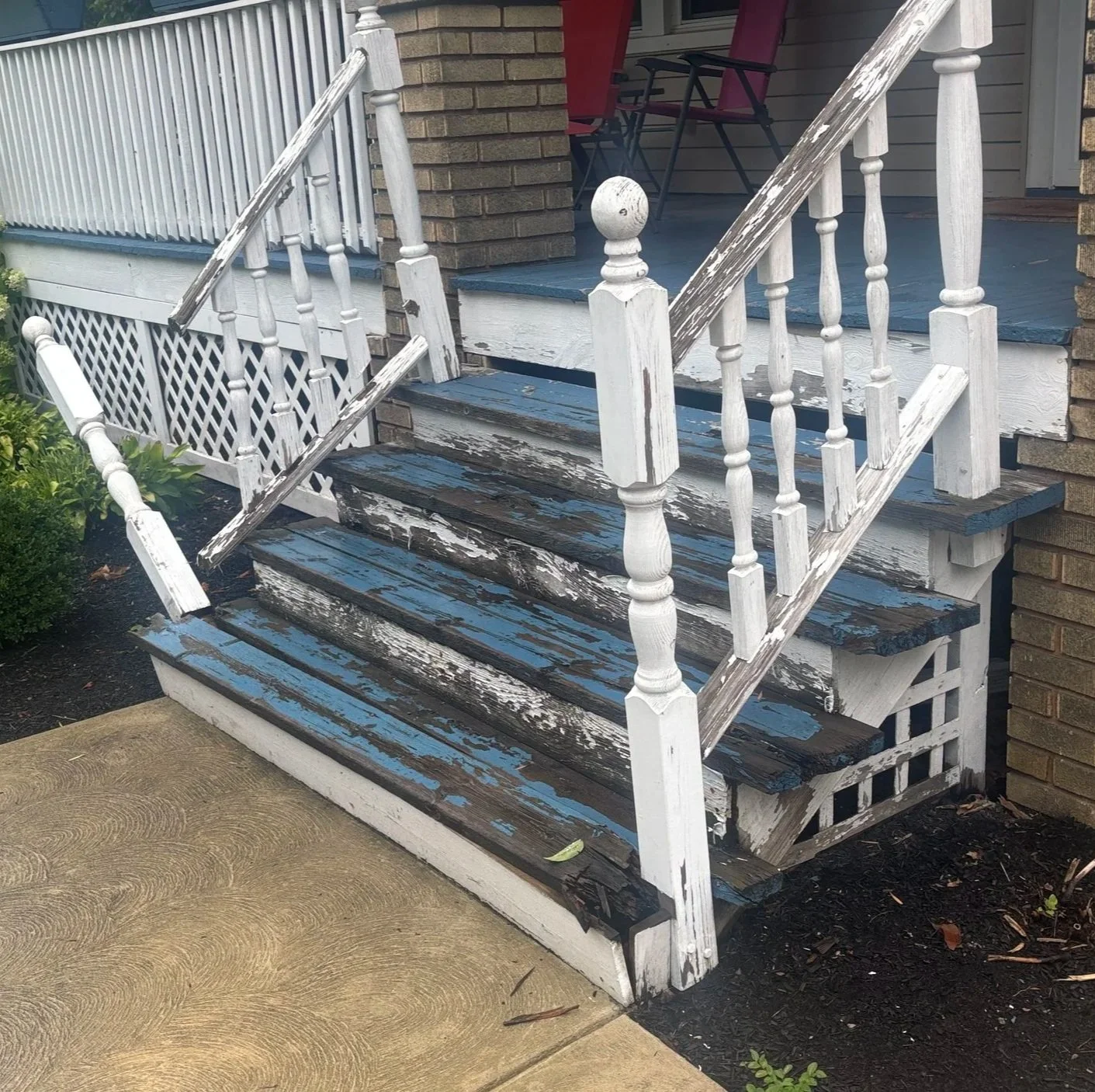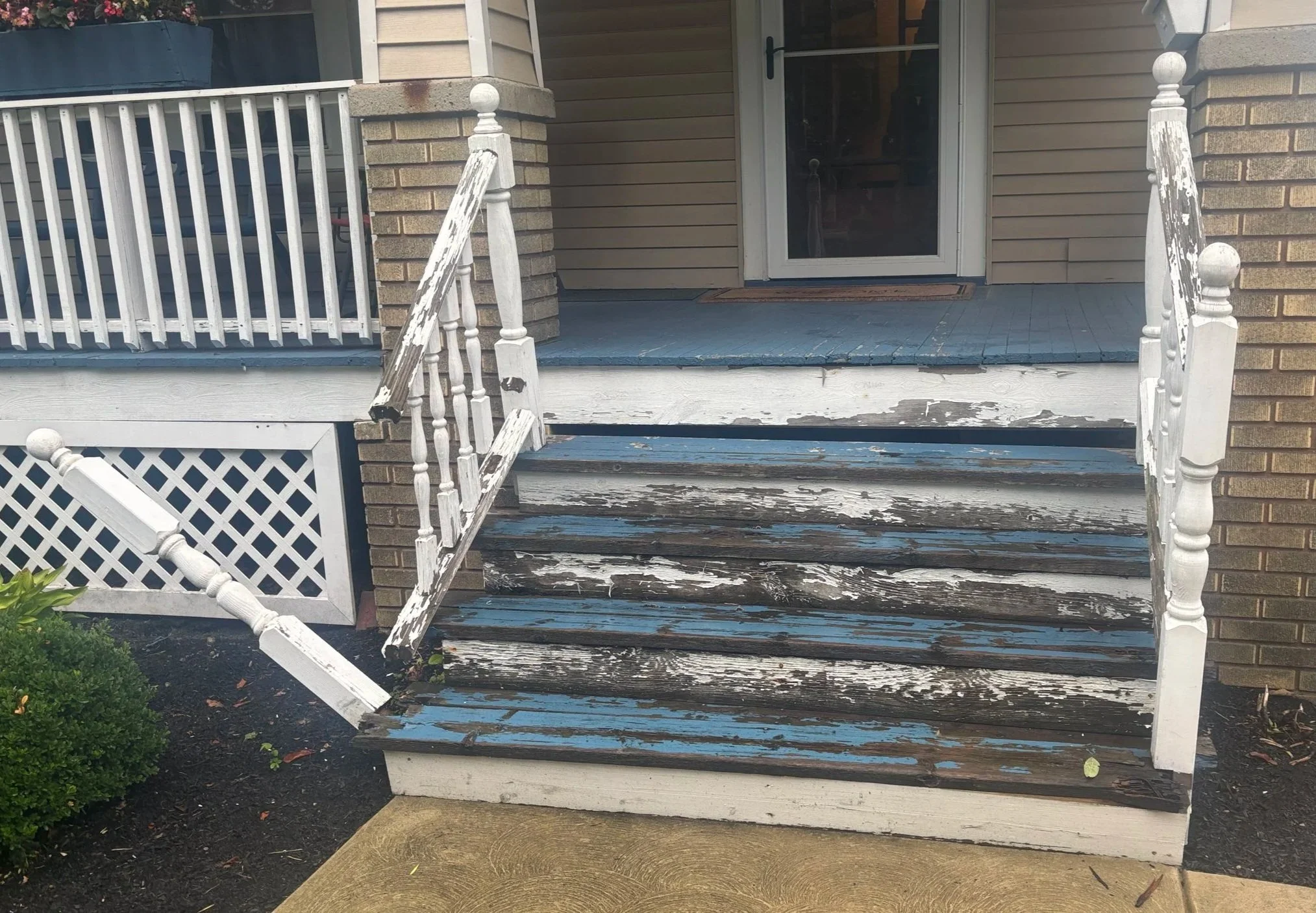 Porch and steps repair. As requested by customer only the damaged boards were replaced.