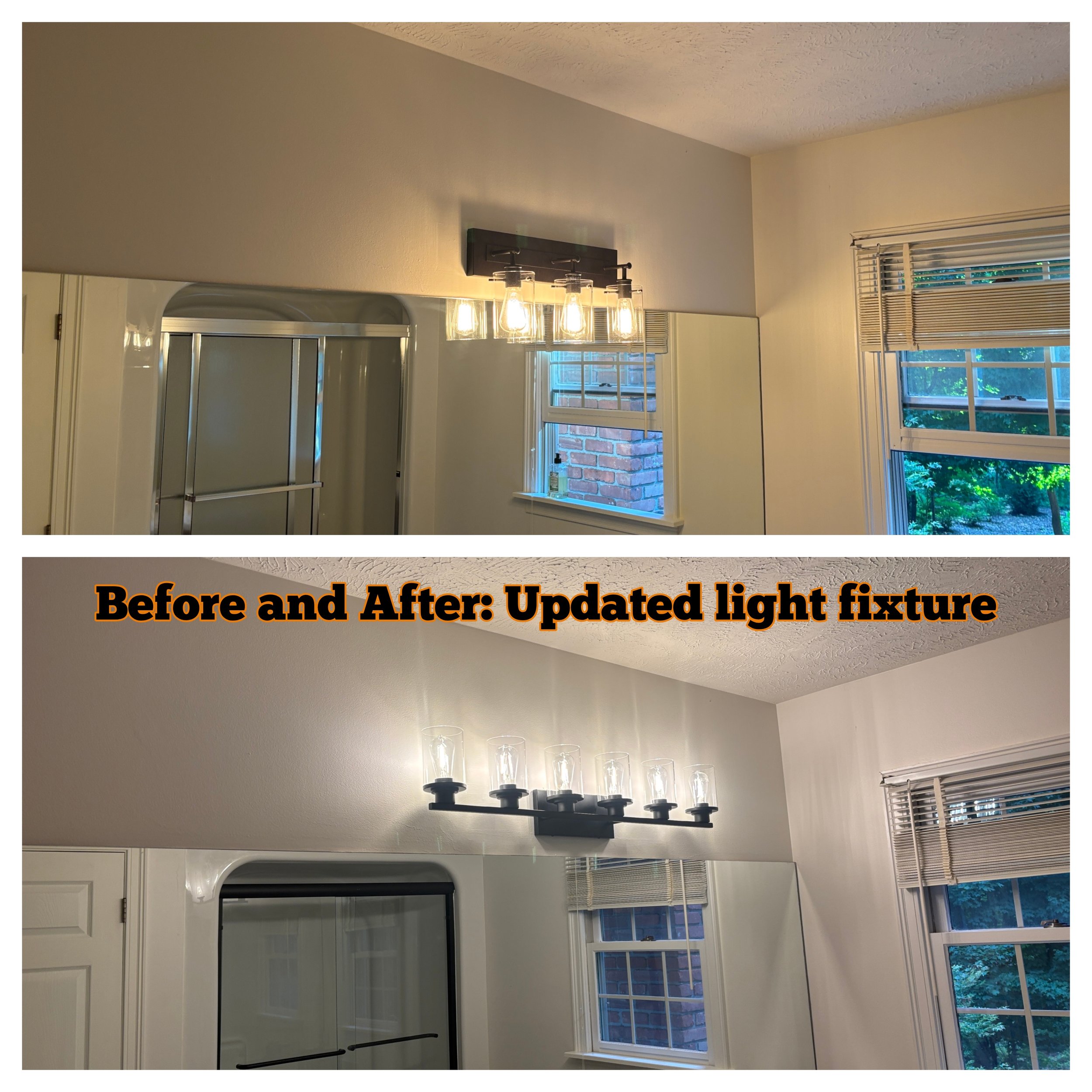 Full kitchen remodel. Customer wanted to change the cabinet footprint and downsize the window to allow lower cabinets. This required a complete gut of the kitchen down to the studs. The soffit was removed and the ceiling was reframed to change the angle of the ceiling. Repaired damaged sub floors, leveled floor for new flooring and cabinets to be installed. Existing picture window was too large so it was framed in and a smaller window was installed. All electric was updated and relocated and fixtures were installed by an electrician. Converted eat-in kitchen into a full wrap around kitchen. Installed drywall, cabinets, appliances, flooring, backsplash, and painting.